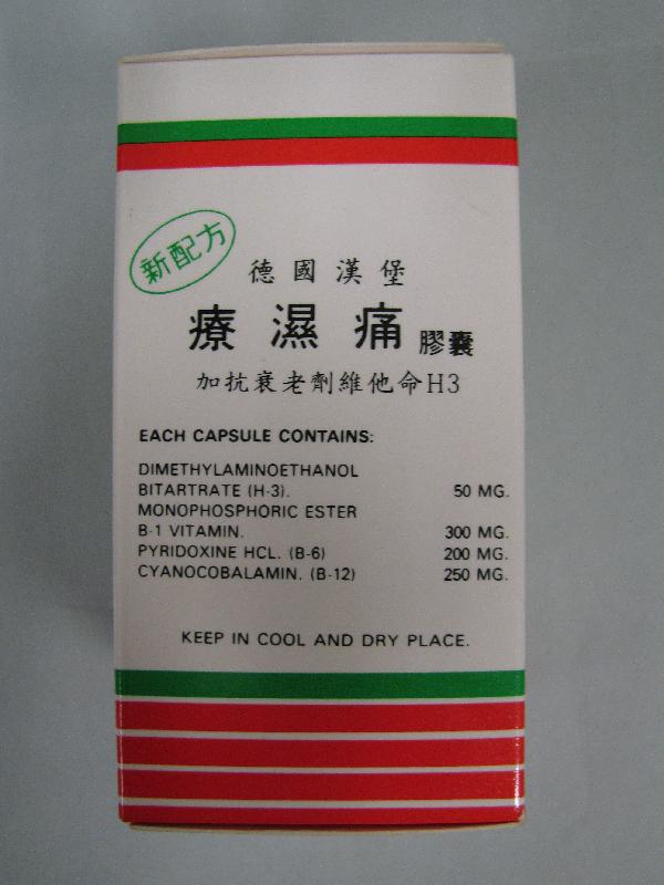 衞生署今日(十一月十二日)呼籲市民不要購買及服食「德國漢堡療濕痛膠囊」,該產品被發現含有無標示西藥成分,可能會引起副作用。