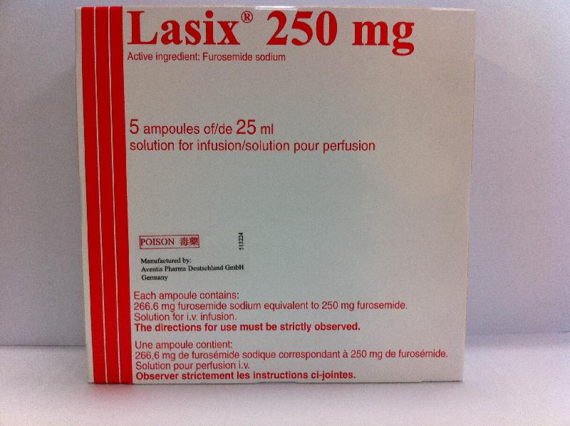 The Department of Health (DH) today (April 7) instructed licensed drug wholesaler, Sanofi-Aventis Hong Kong Limited, to recall 12 batches of a pharmaceutical product called "Lasix 250mg/25ml injection" (Registration number: HK-05566) from market because of potential safety issue.