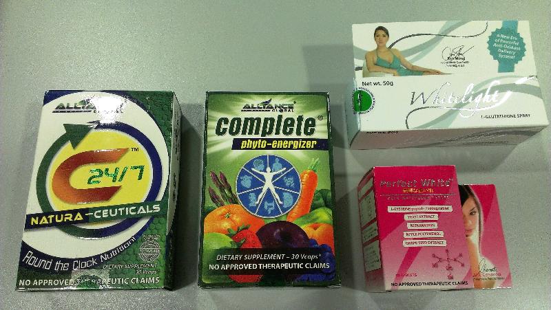 | | Four unregistered pharmaceutical products, namely C 24/7 Natura-Ceuticals, Complete Phyto-energizer, Whitelight, and Perfect White, were found being offered for sale by a retail shop in Central. | | |