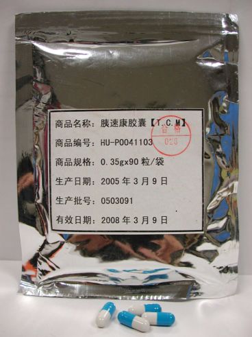 Glibenclamide (格列本脲) is a western drug ingredient used for management of diabetes. It should only be used under medical supervision. Its known side-effects are nausea and gastro-intestinal upset. Products containing this drug ingredient are Third Schedule poisons under the Pharmacy and Poisons Ordinance and can only be sold on a doctor's prescription and supervision by a pharmacist.