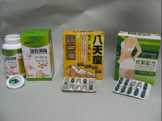 卫生署发言人表示产品分别名为「卡路美收紧配方」、「八天瘦」和「强效消脂」。