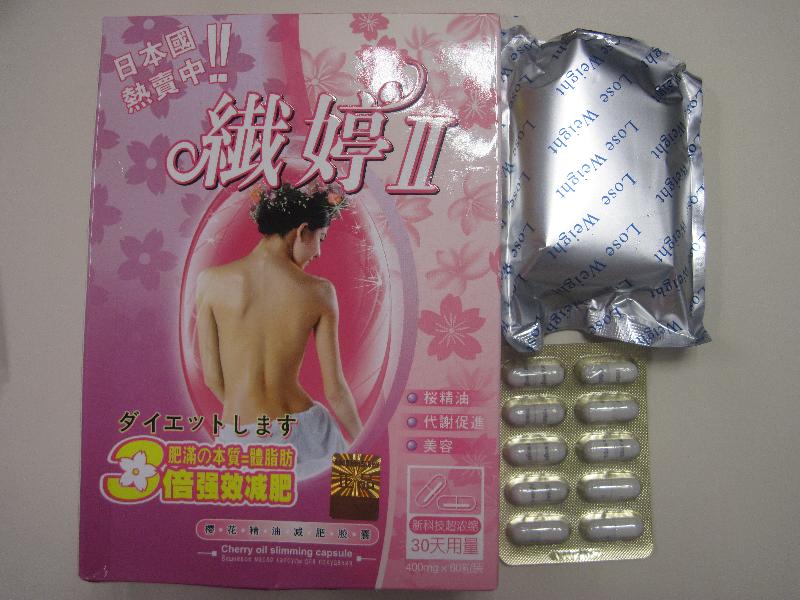 卫生署今日(六月七日)呼吁市民不要购买或服用四种分别名为「纤婷II(樱花精油减肥胶囊)」、「纤婷III(樱花精油减肥胶囊)」、「瘦身语III」和「婷美丽人」的减肥产品,因为这些产品被发现含没有标示的西药成分,服用后可能会产生严重副作用。